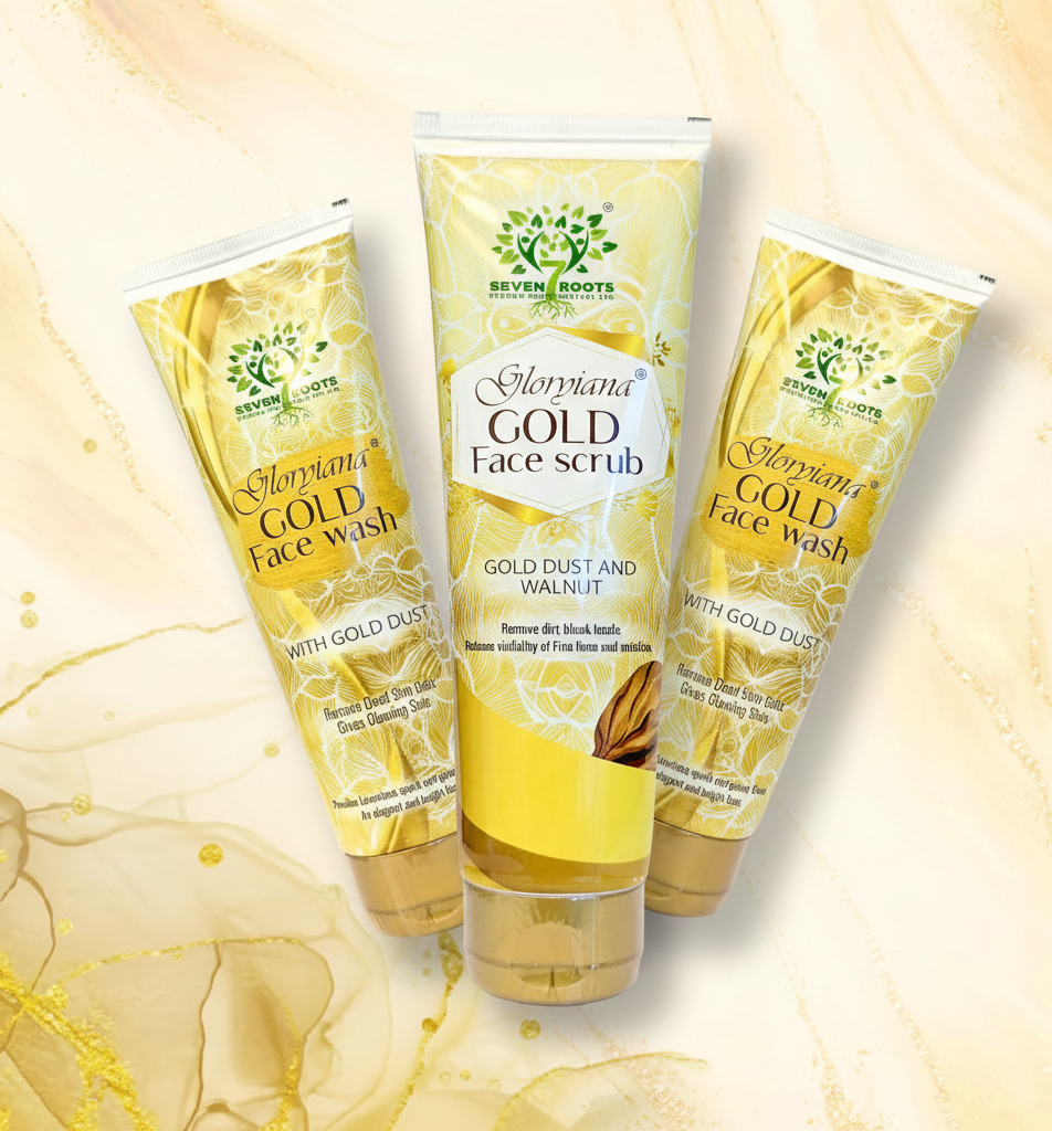 Gold Face Scrub: Formulated with real gold dust and natural walnut shell powder, this exfoliating scrub gently removes dead skin cells, blackheads, and impurities. Aloe vera soothes and hydrates the skin, improves texture, reduces dullness, and reveals a brighter, smoother complexion.